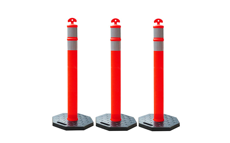 The blow molded polyethylene bollard is easily seen due to its fluorescent orange color and standard reflective tapes